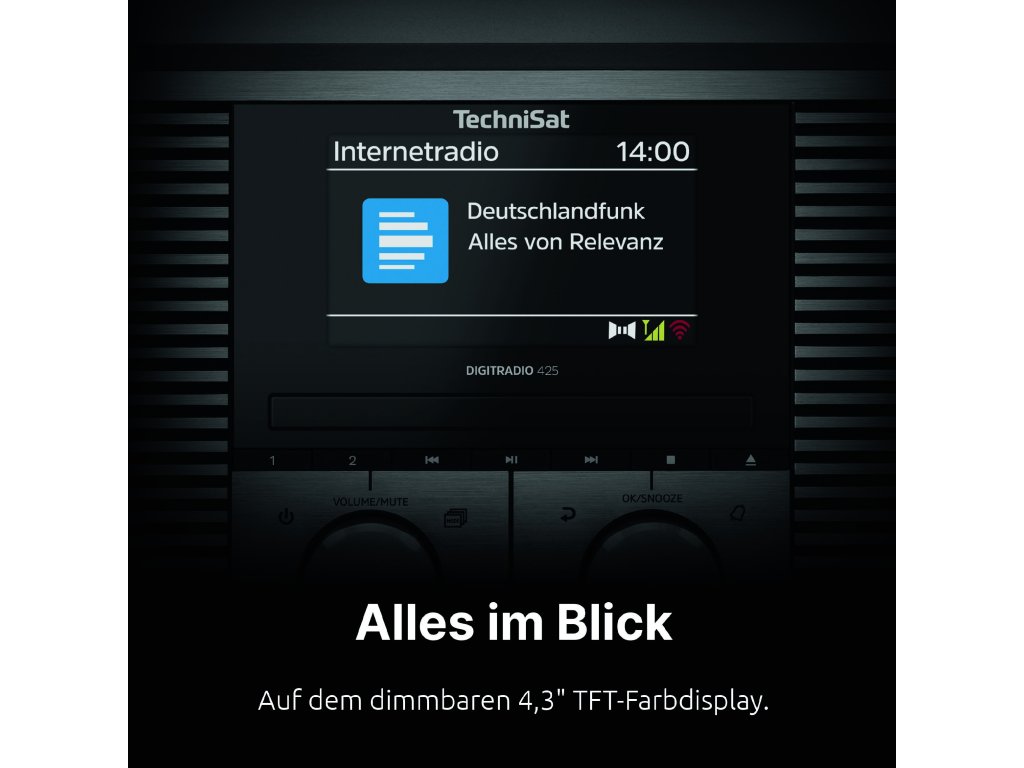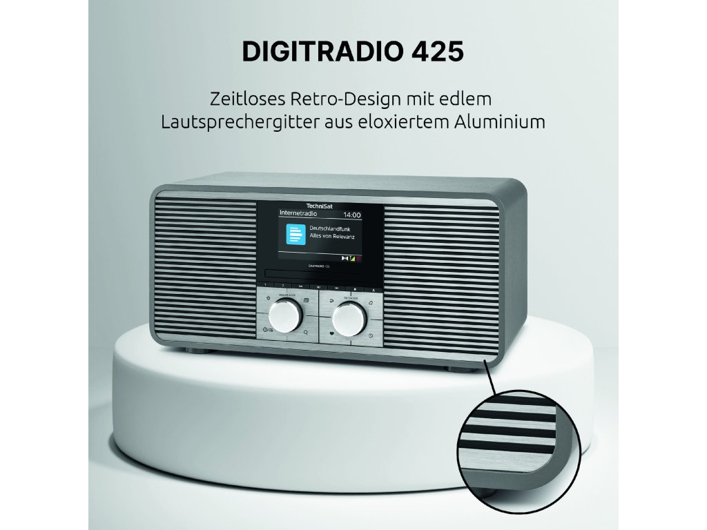 DIGITRADIO 425 přijímá DAB+, FM a internetové rádio a nabízí 30 programových předvoleb pro každý typ příjmu.