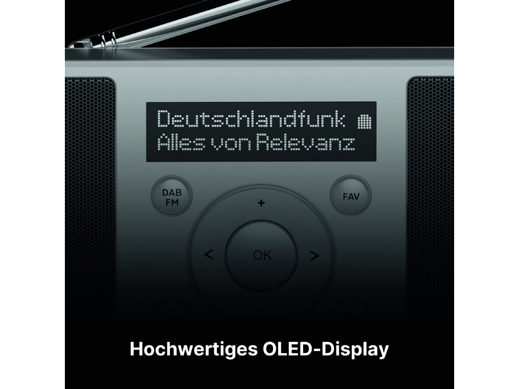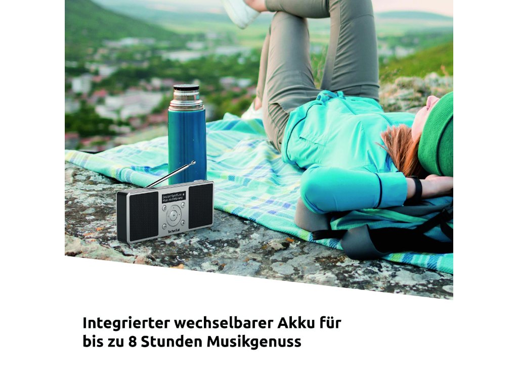 Silná a vyměnitelná baterie také činí rádiový přijímač ideálním společníkem na cestách (až 10 hodin použití mobilního rádia)
